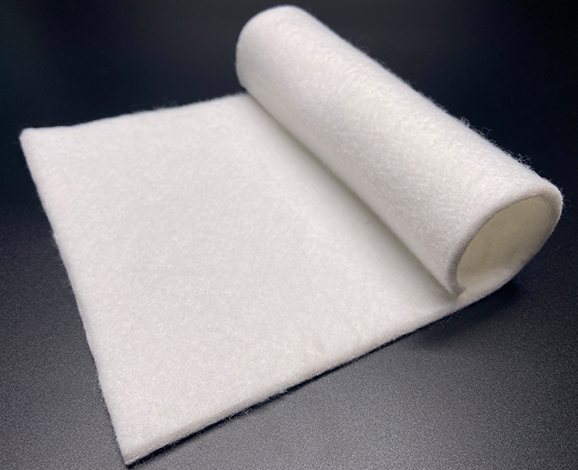 以滌綸、丙綸等為原材料,經(jīng)過(guò)開(kāi)松、梳理、鋪網(wǎng)、針刺、熱軋工藝制造,
